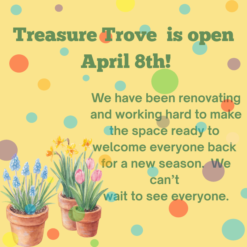 Treasure Trove will reopen Wednesday April 8th 2026. This year looks to be one of our best ever.